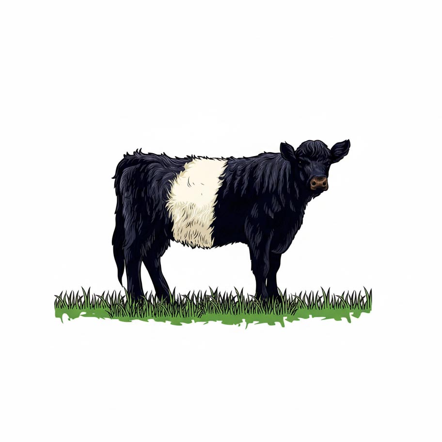 The Belted Galloway is a traditional Scottish breed of beef cattle. They thrive in rough pastures where they feed solely on grass. The result is meat with exceptional marbling, rich flavour and tenderness. Their distinctive shaggy black-and-white coats keep them warm, yielding lean yet succulent meat without the excessive back fat of other breeds.